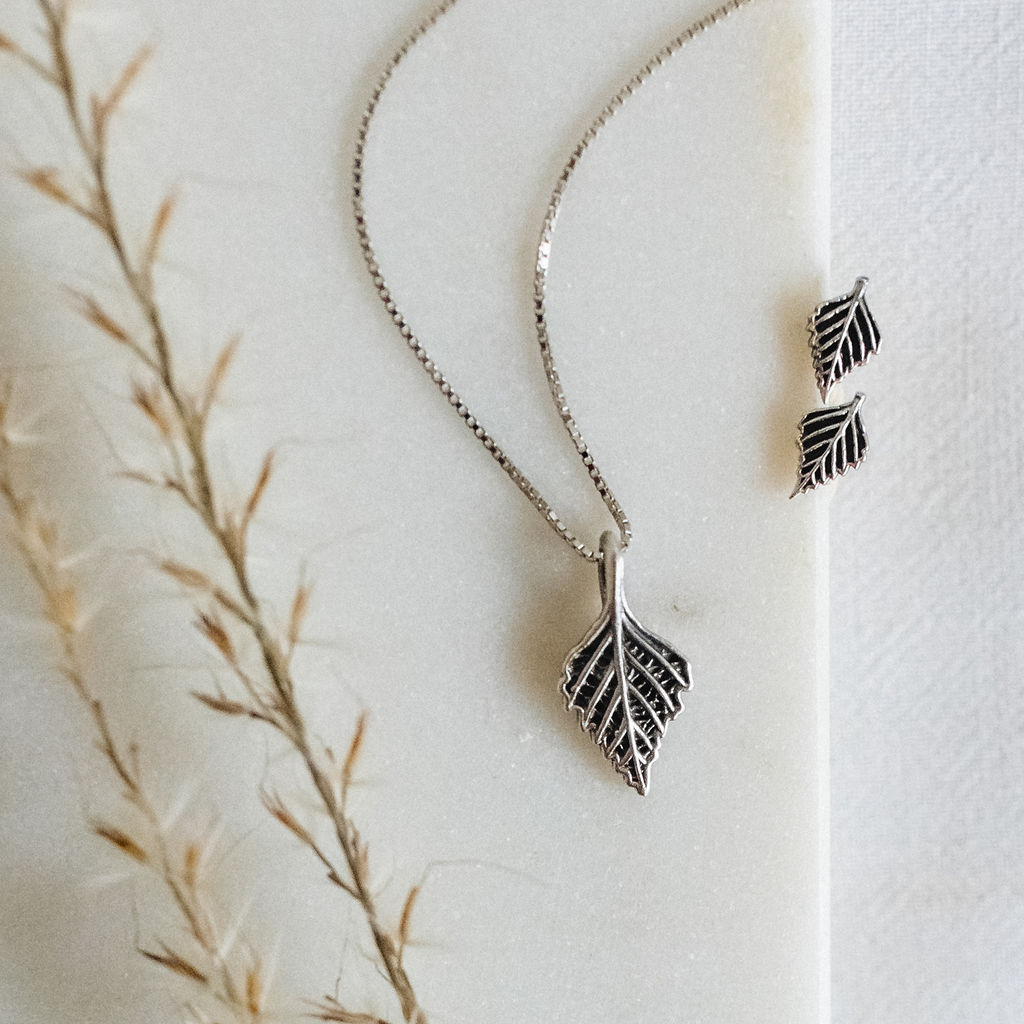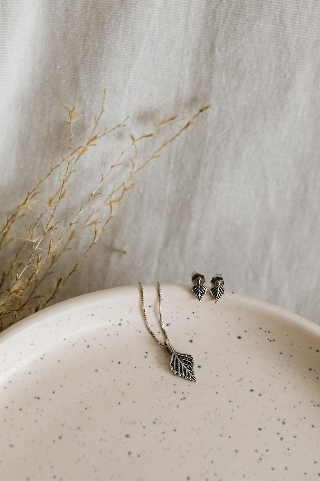 Silber-Set BIRKENBLÄTTER – Ohrstecker und Halskette