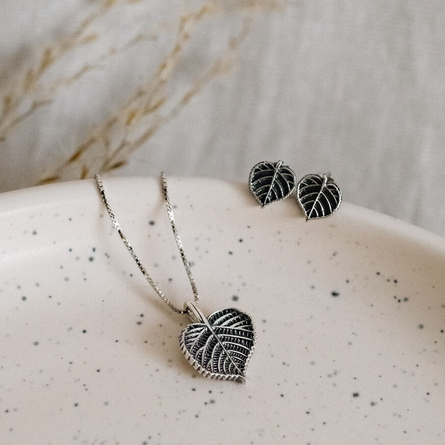 Silber-Set LINDENBLÄTTER – Ohrstecker und Halskette
