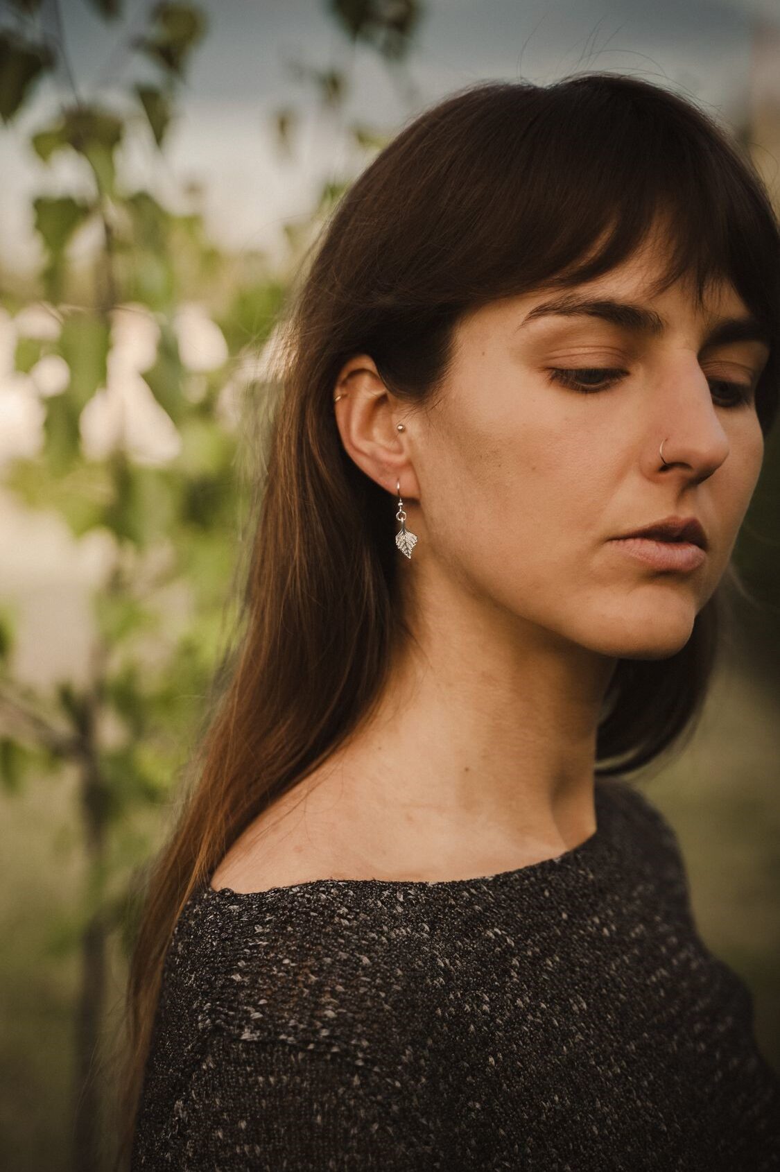 Ohrringe in Blattform, entworfen in unserer Werkstatt.