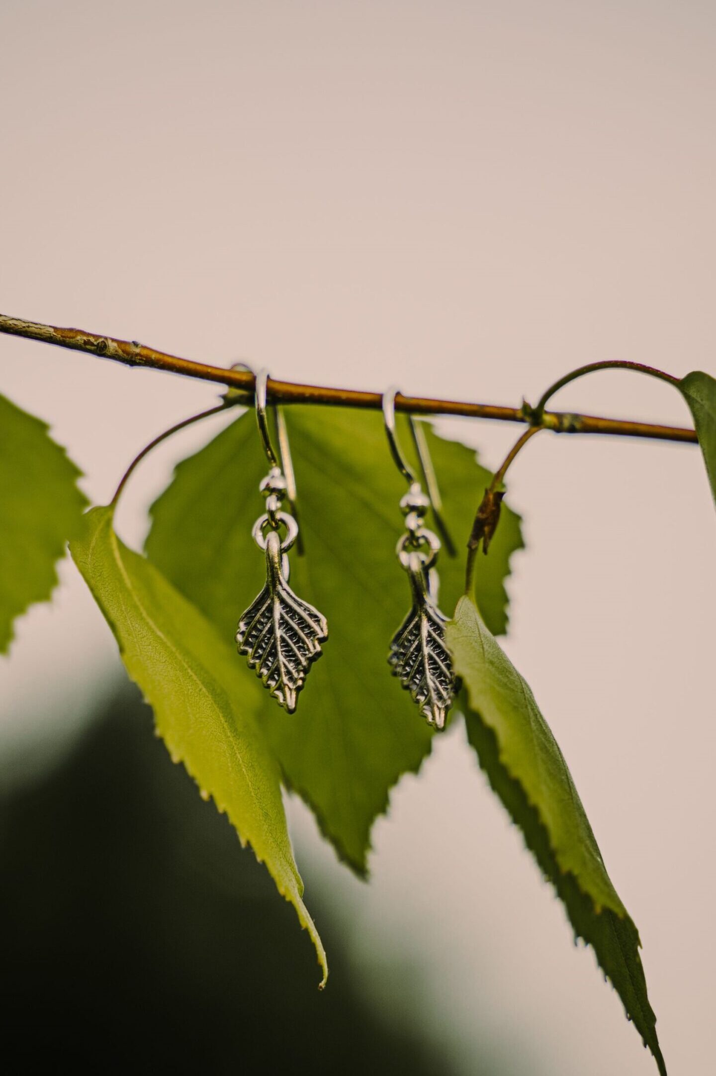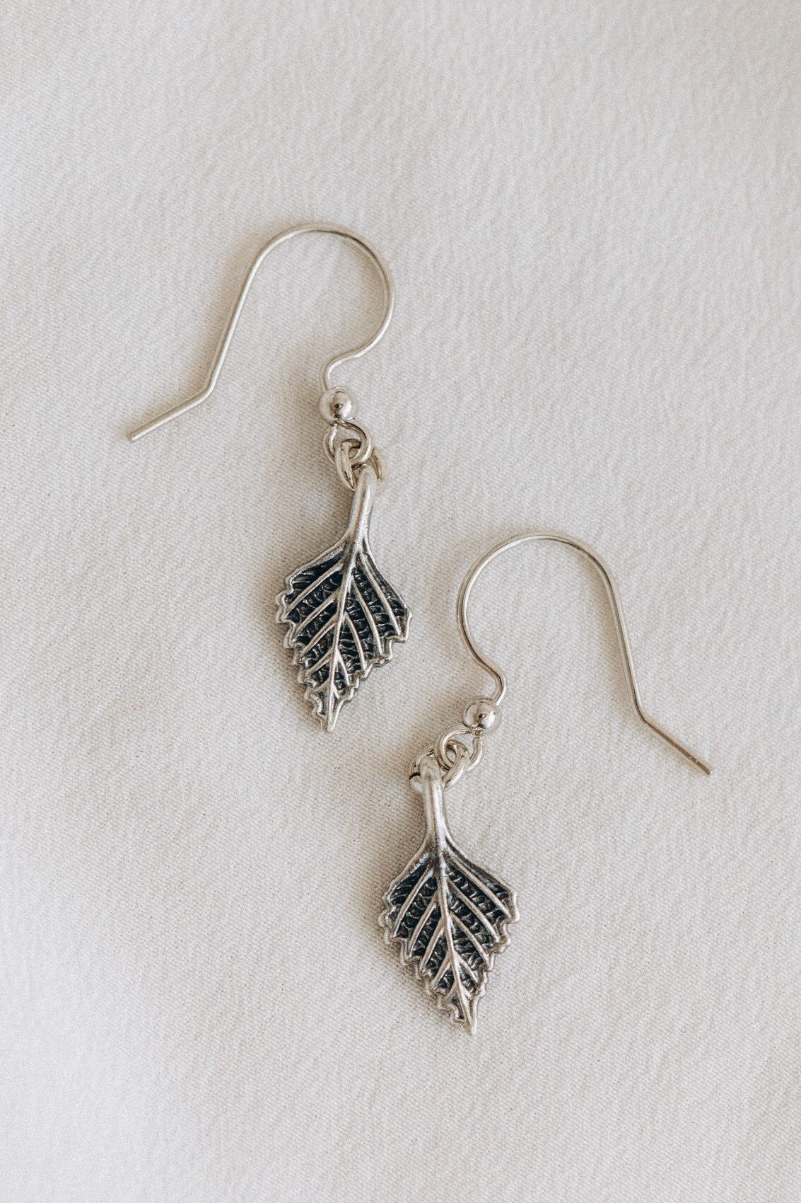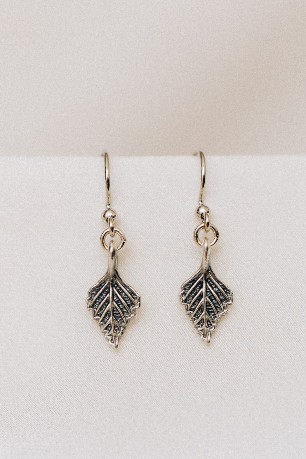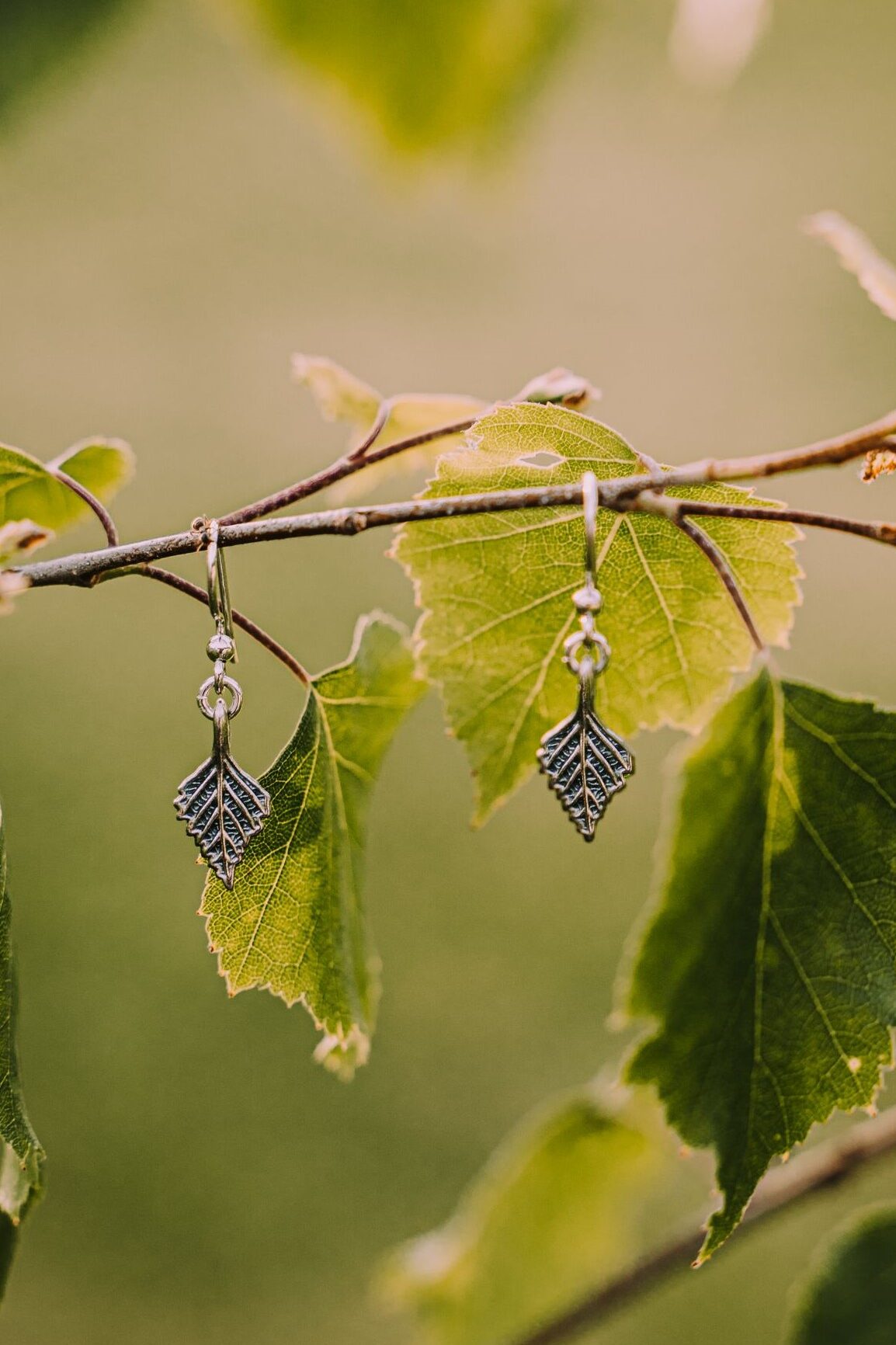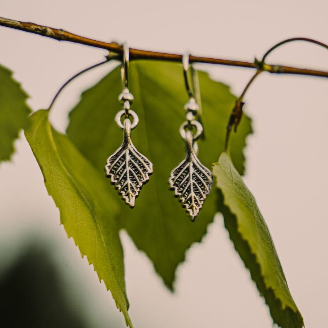 Zarte Ohrringe mit Birkenblättern. Gefertigt aus 925er Silber. Für Liebhaberinnen botanischer Akzente.