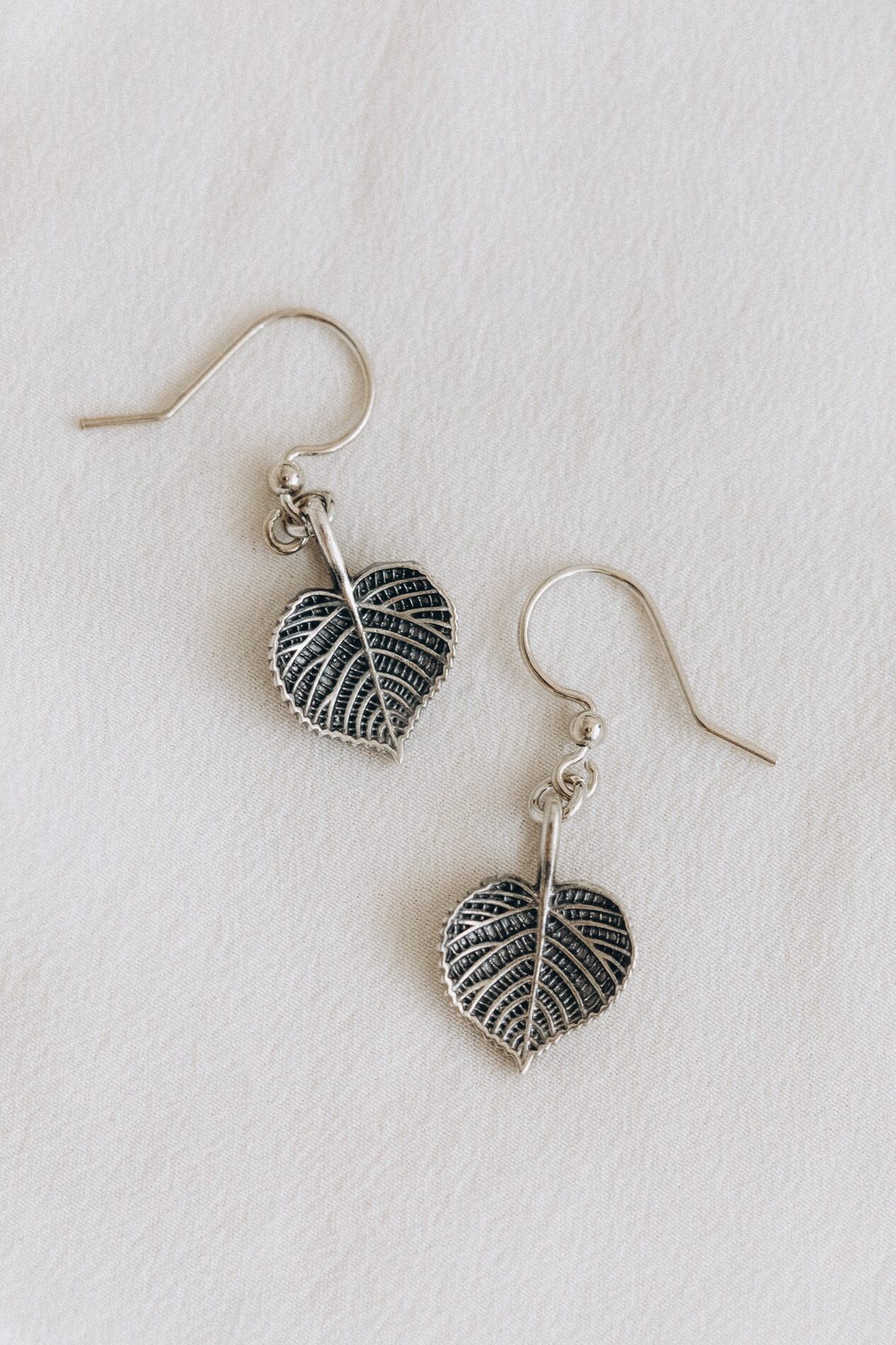 Silberne Hängeohrringe mit Lindenblatt-Design