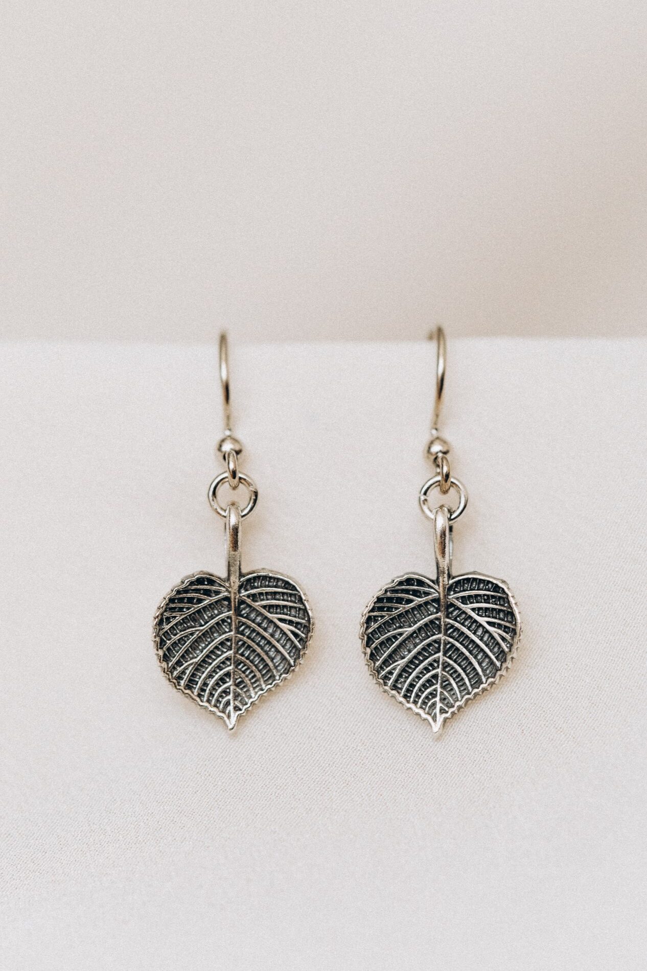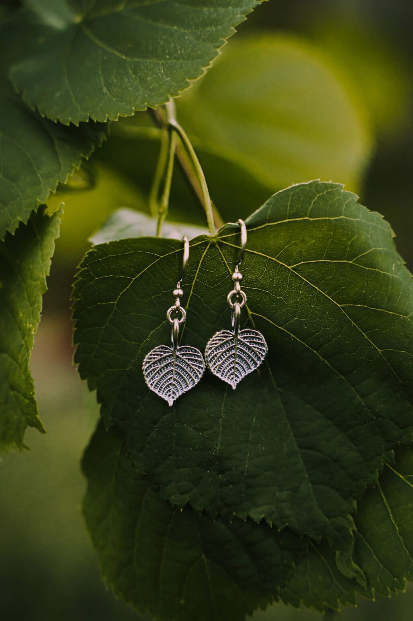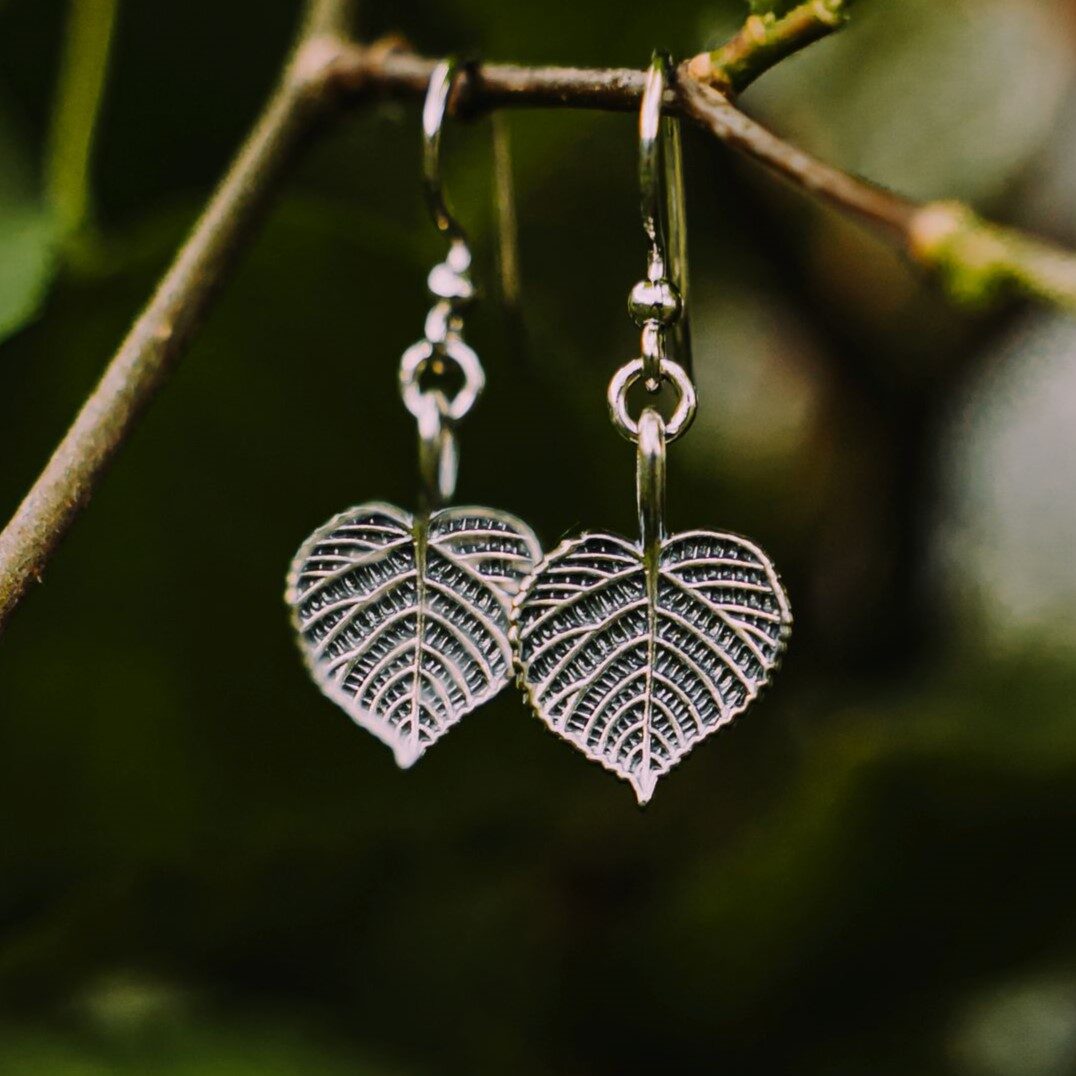 Zarte Ohrringe mit Lindenblättern aus Silber. Sie erinnern uns daran, dass Liebe und Sensibilität eine starke Kraft sind.