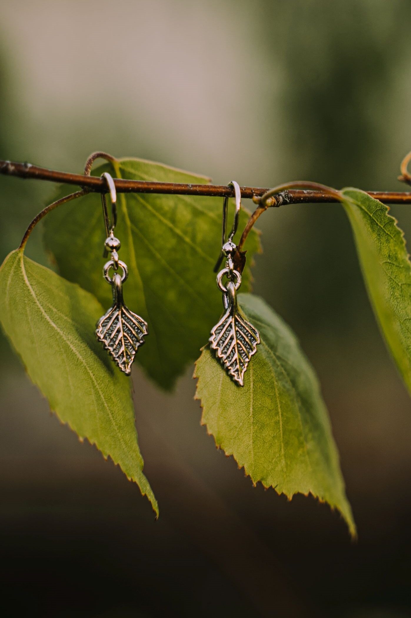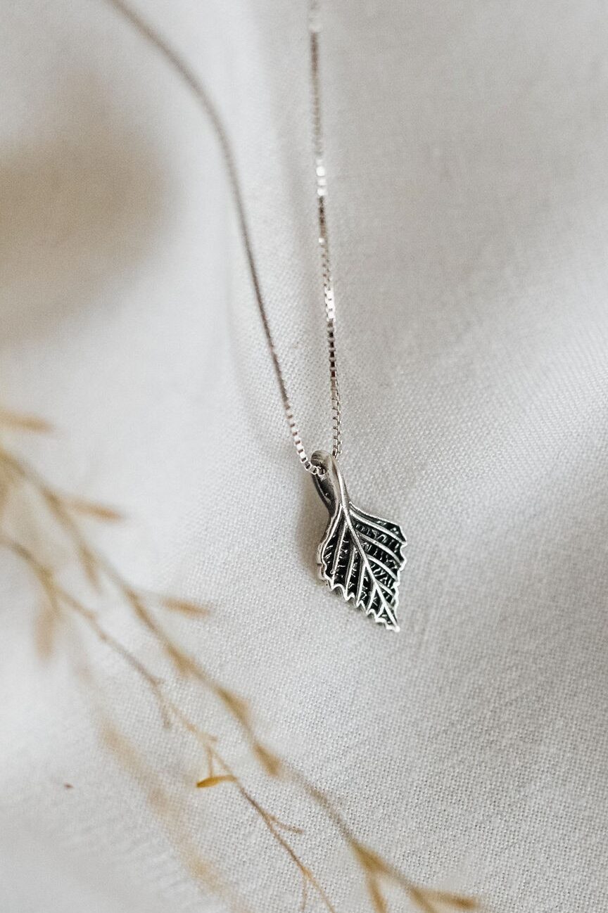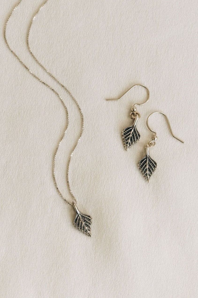 Subtiles Set: Halskette und Ohrringe mit BIRKENBLÄTTER aus 925er Sterling-Silber. Perfekt für Naturliebhaberinnen.