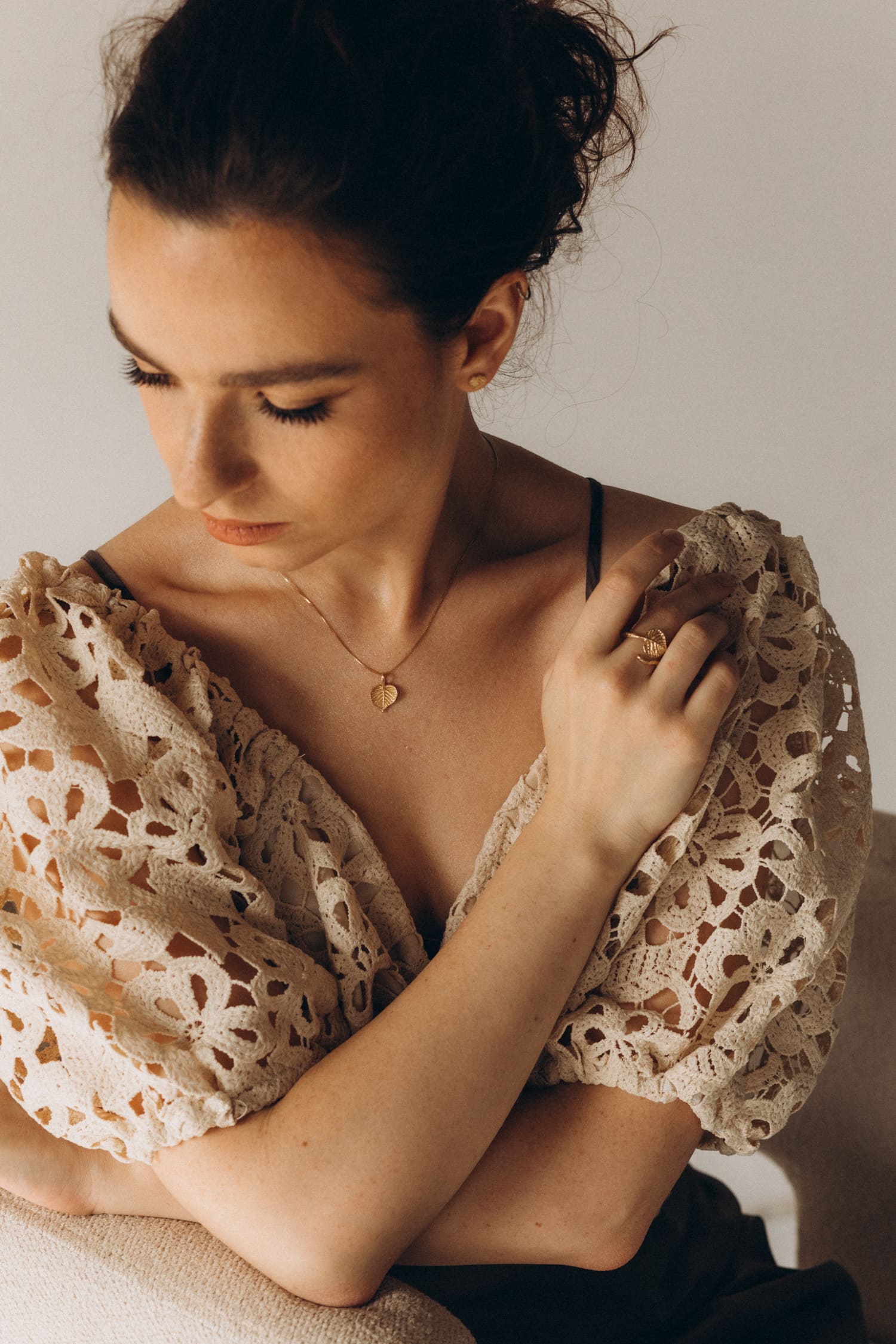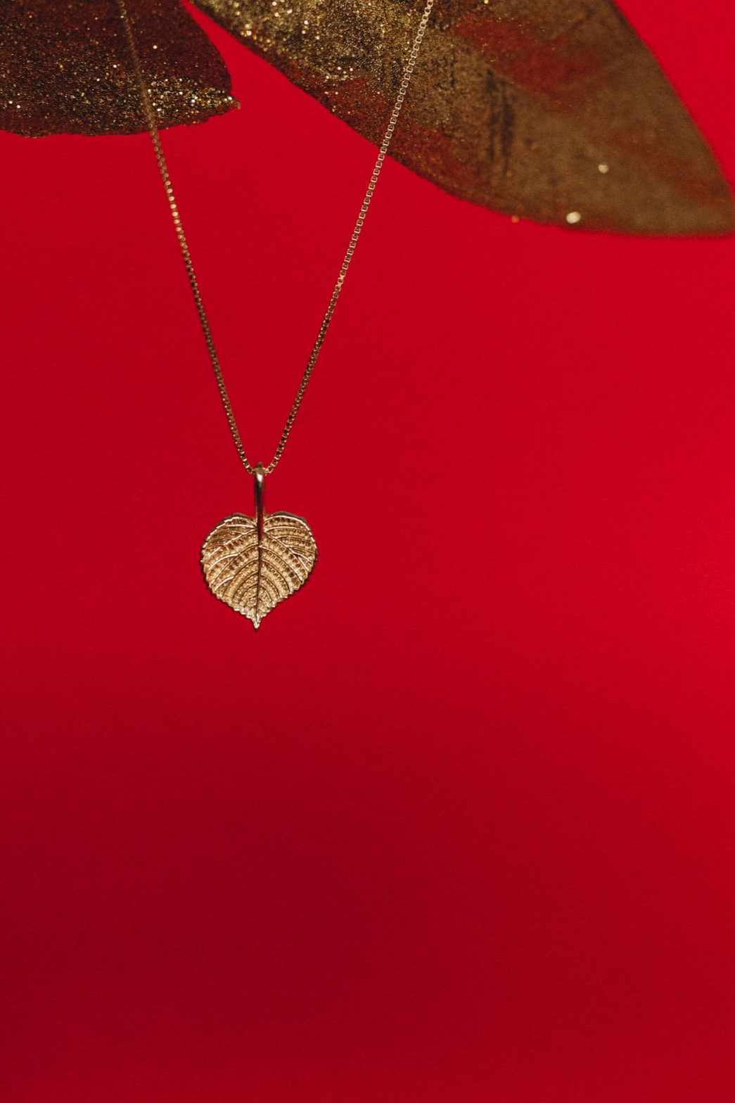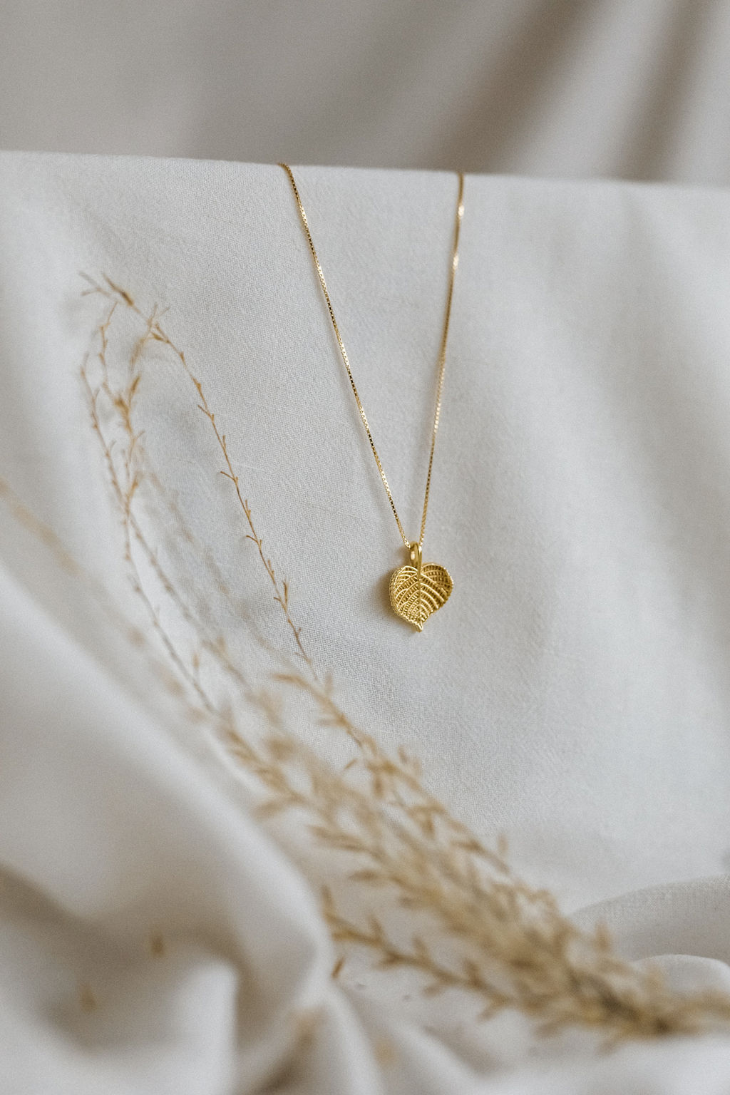 Feine Halskette in Form eines Lindenblattes. Entworfen in unserer Werkstatt.