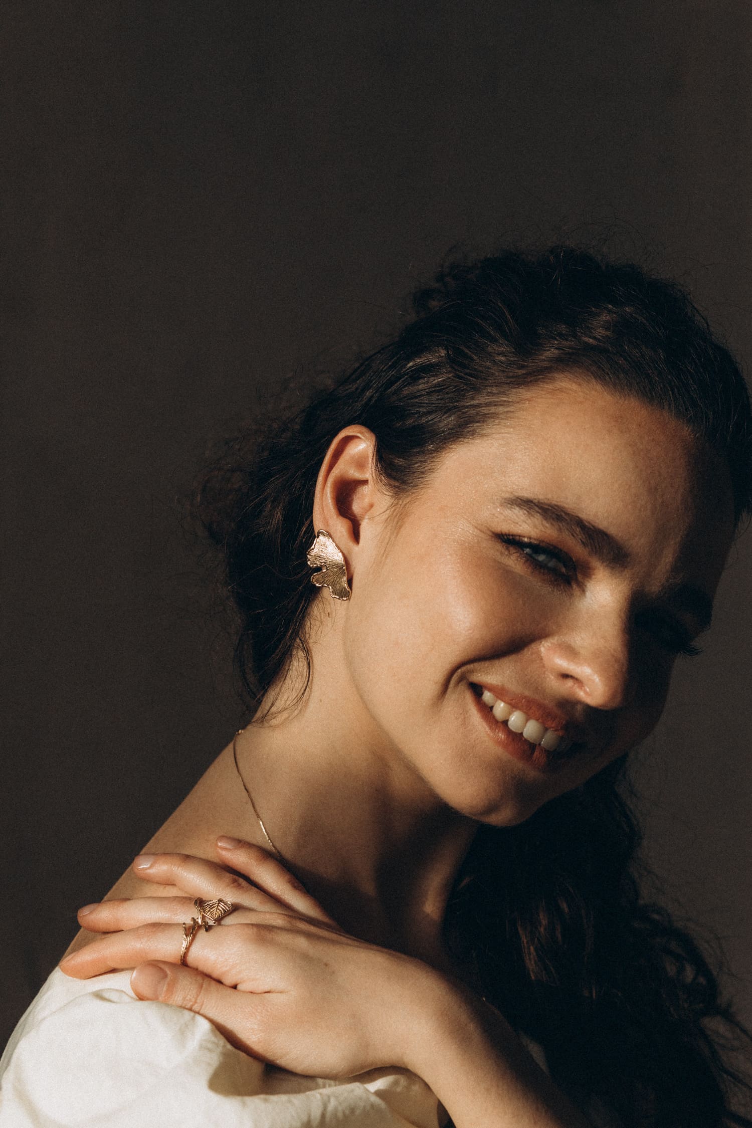 Vergoldete Ohrstecker mit Ginkgo-Blättern