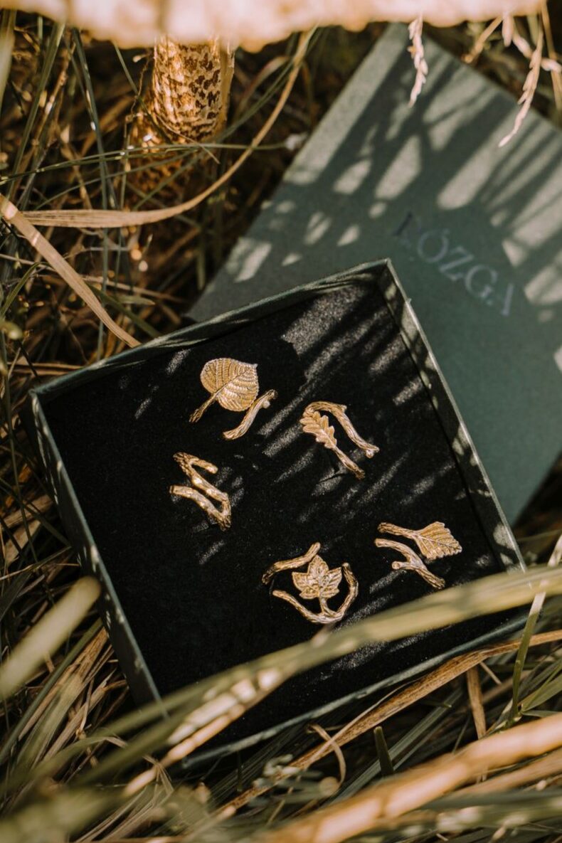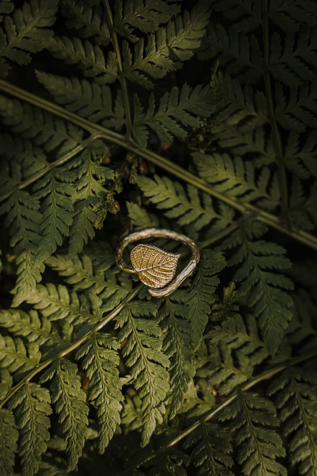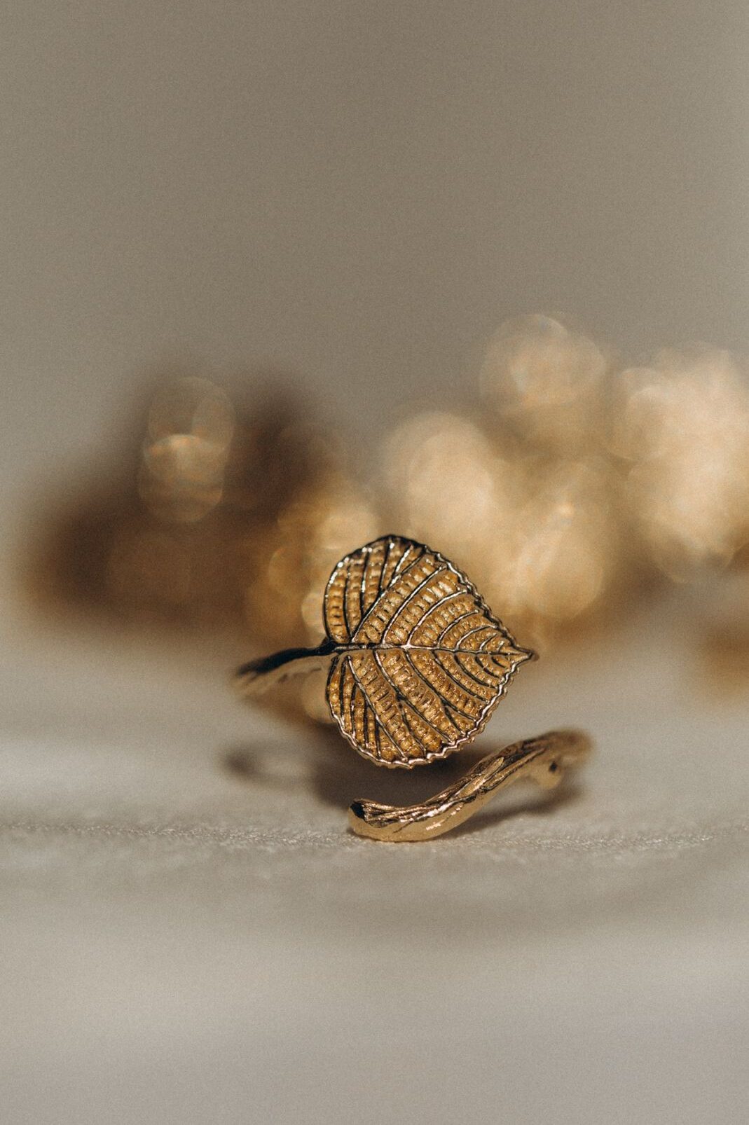 Waldring mit Lindenast, aus 925er Silber, vergoldet mit 18-karätigem Gold. Perfekt für Naturliebhaberinnen.
